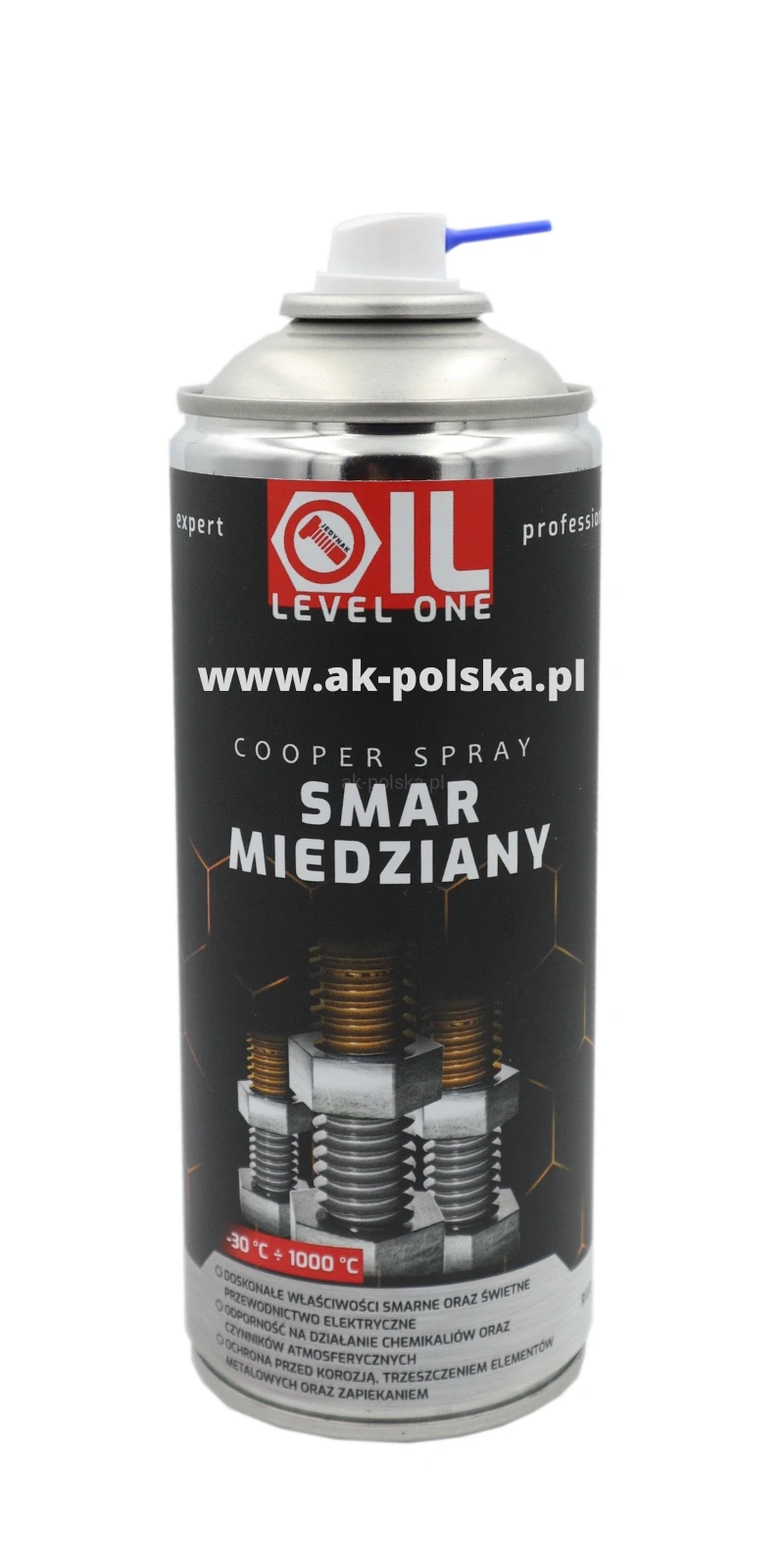 Smar miedziowy w sprayu OIL LEVEL ONE stosowany jest do smarowania w trudnych warunkach, takich jak wysoka temperatura czy niekorzystne ciśnienie.